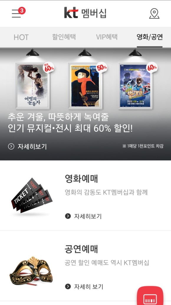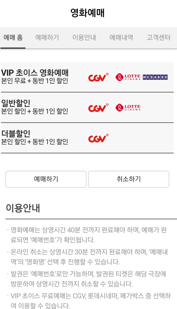 1. 통신사 vip라면 월 1회 영화관람이 무료